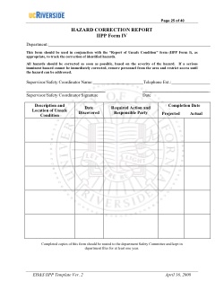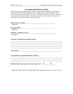This form should be used in conjunction with the “Report of Unsafe Condition” form (IIPP Form I), as